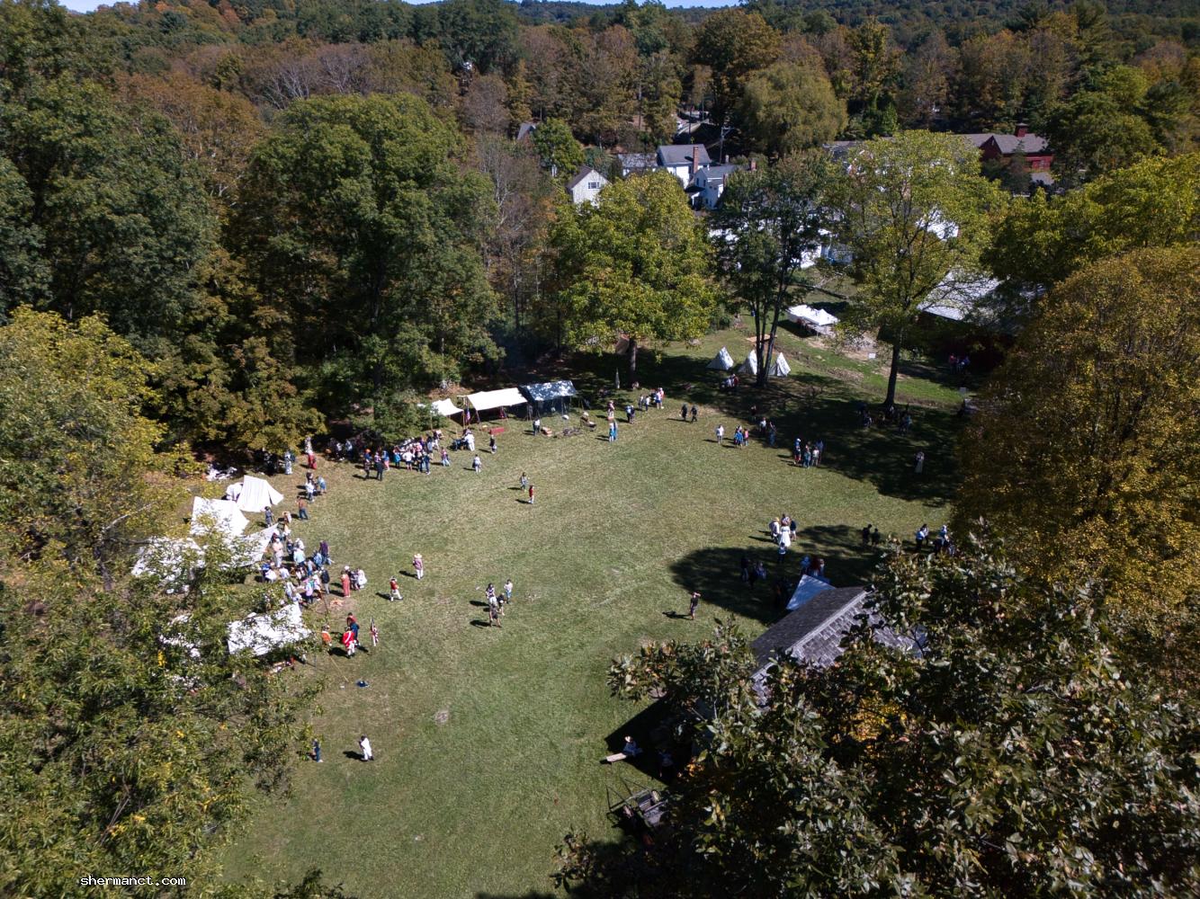 As the morning progresses, cars are spilling into overflow lots: Colonial Park, the lot behind the school, Veterans Field, even Sherman Green, with clearly posted signage guiding the way. Local volunteers and town staff are directing traffic. The atmosphere is festive. Costumed children scamper between stations; families picnic under shade trees; cameras — both professional and phone-based — are held aloft.