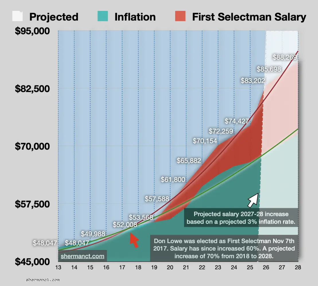 - 2018 - 2028: The First Selectman’s personal compensation is projected to increase by 70%.